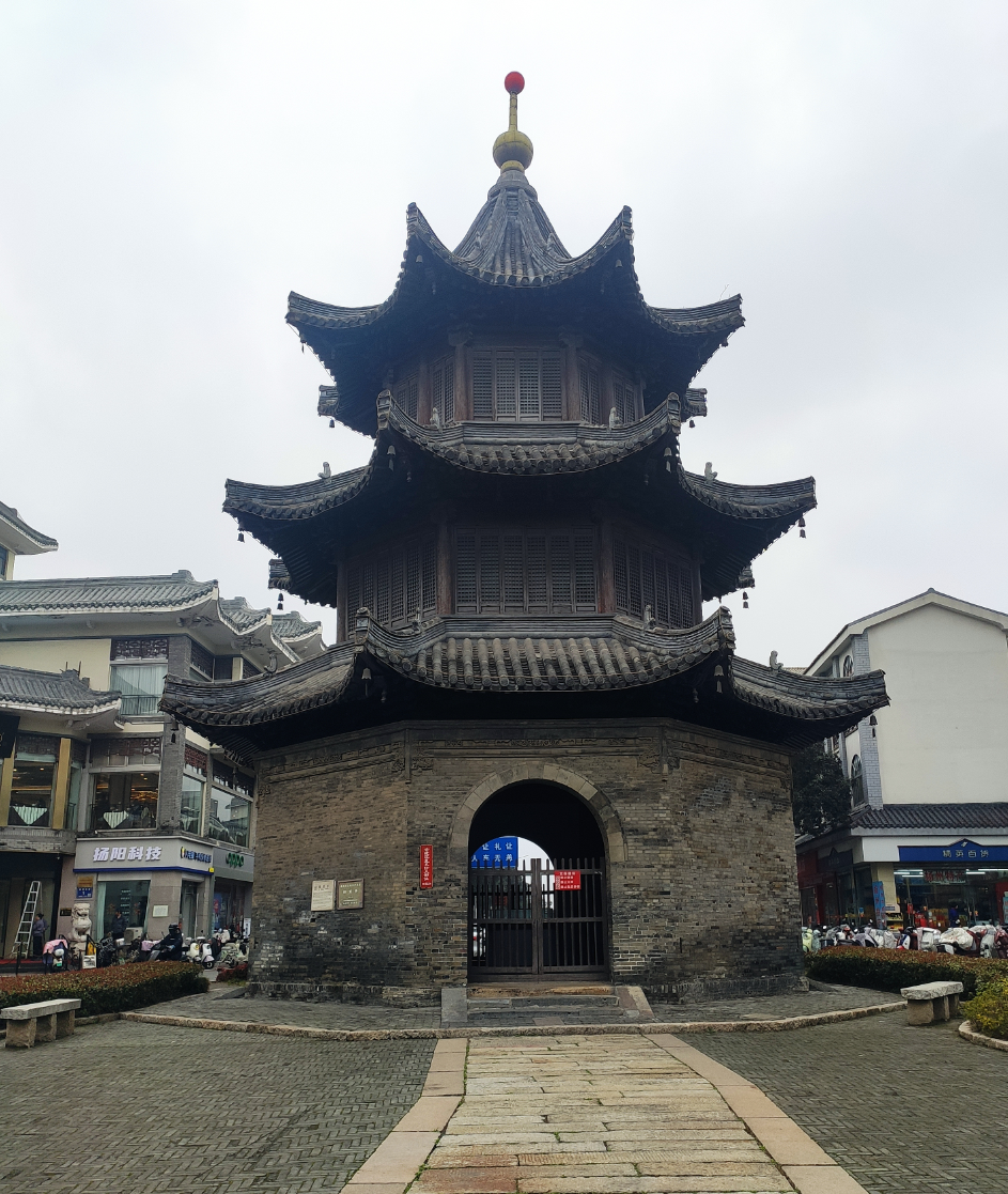刚好住在文昌阁附近,走路大概就五六十米的样子。文昌阁不大,也不高,而且在路中央,正常没办法走过去,不过这条路不一般。