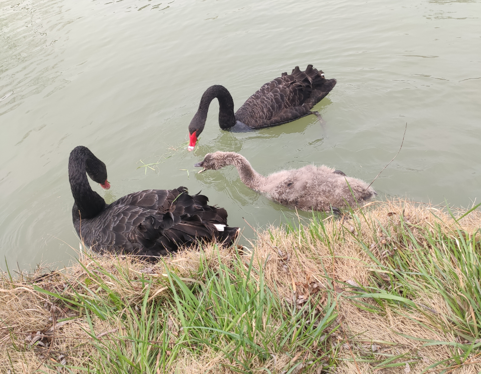 瘦西湖有很多黑天鹅、绿头鸭,游客拔草喂,它们也吃,都是野生的,在扬州过冬。