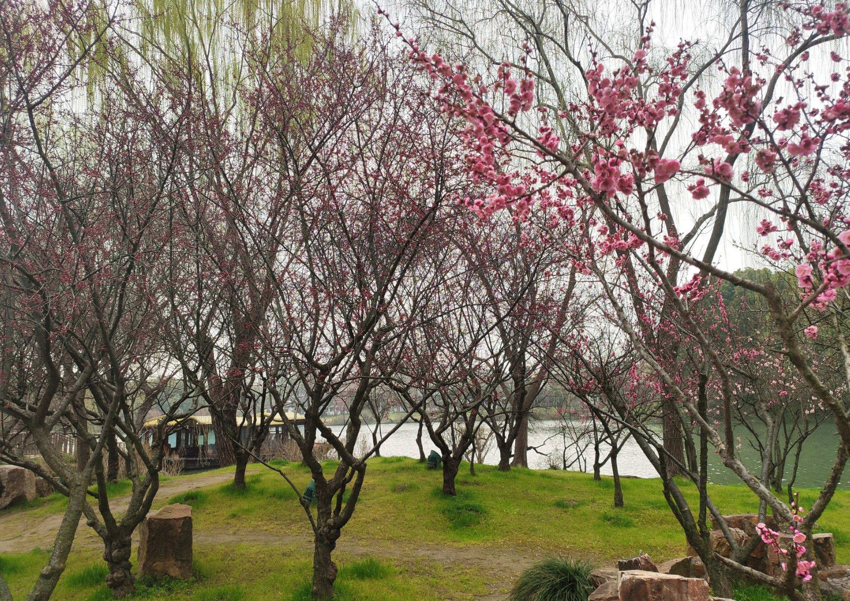 这时刚好是梅花开放的时节,其他花基本都谢了,整个瘦西湖是比较清新、素雅的